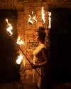 Athena was the Olympian goddess of wisdom and good counsel, war, the defense of cities, heroic endeavour, weaving, pottery and various other arts. She was depicted as a majestic woman armed with a shield and spear and wearing a long robe, helmet and the famous "goat" - a snake - adorned with the monstrous face of the Mermaid Medusa. The costume is designed exclusively to highlight the history and mythology of the city of Athens through the element of fire. A fire theatre performance unique on a global scale.